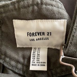 Green denim overalls