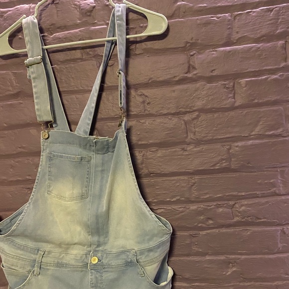 Hard to get a good picture of them so I apologize; brand new without tags size 2x overalls. Super cute just in time for summer!