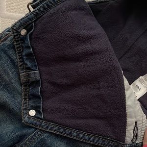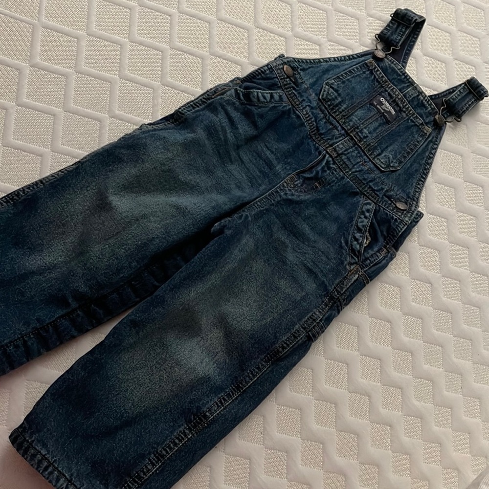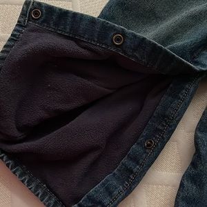 Like new! OshKosh Bigosh jean overalls! Fleeced lines on inside. Snaps down legs.