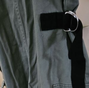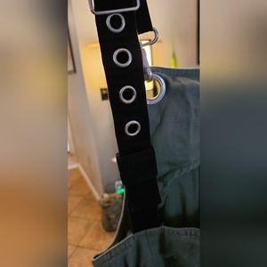 Adorable cargo-style overalls. Super cute, baggy fit, cargo pockets, webbing belt style overall straps with metal clips. Military green. Juniors size small. Only worn twice.