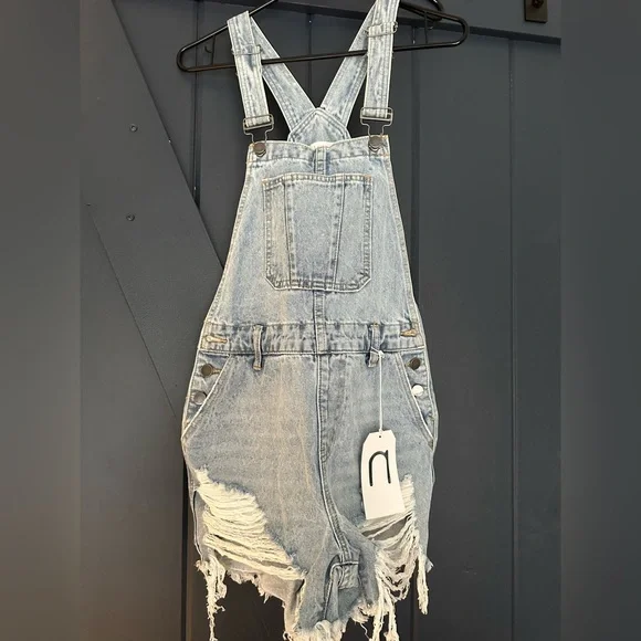 Never-worn Nature Denim jean overall shorts size small with tags.