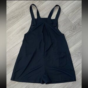 Halara adjustable strap button overalls with 4 pockets.