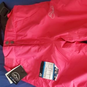 Stylish lined snow pants w velcro waist adjustments and alot of details