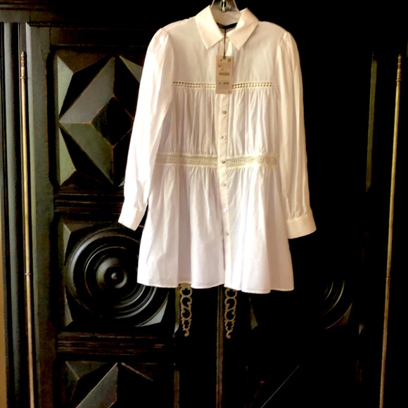 White cotton with petit point horizontal detail. Mother of pearl buttons. With tags.