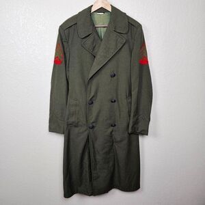 Overcoat Wool Serge Green Men's 38L USMC Marine Core Army Trench Coat Vintage