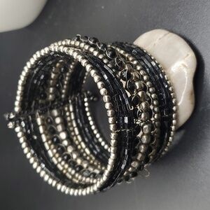 Overflow tiered wrap cuff black seed beaded Gothic bracelet
