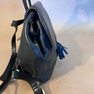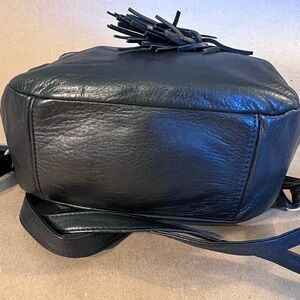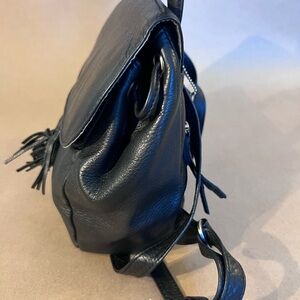 Stylish black leather backpack featuring elegant tassels. Perfect for everyday use with a chic design.