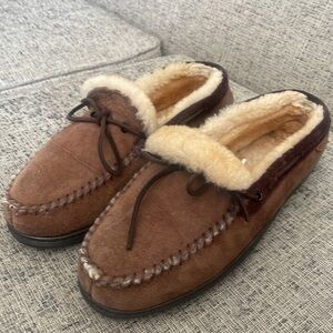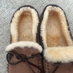 Overland Brown Suede Sheepskin Loafers Size 10