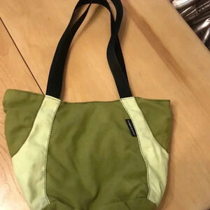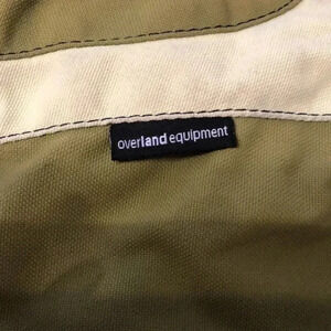 Overland Equipment shoulder bag. Two toned green canvas with black strap