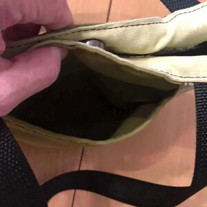 Overland Equipment shoulder bag. Two toned green canvas with black strap. Snap close with one zippered compartment inside. Open front pocket. Measurements are 13” wide x 9” tall. Strap drop is 10.5”