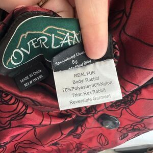 Overland Reversible Women’s Black Rabbit Burgundy Red Rex Rabbit Trim Collar Cuff Coat