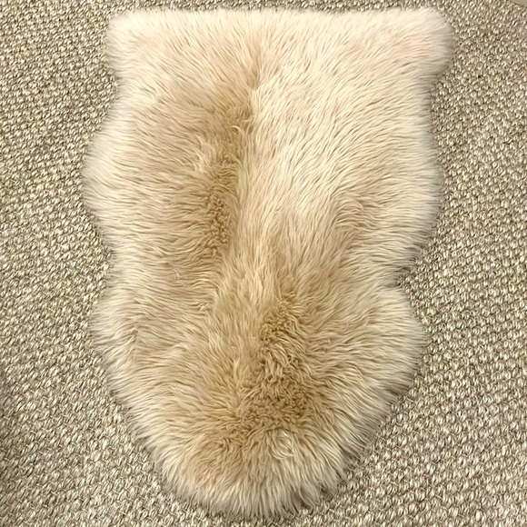 Genuine sheepskin rug from Overland; linen color; smoke-free and pet-free home; Premium-grade genuine Australian sheepskin single-pelt rug