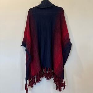 Overland Tiana Painted Alpaca and Organic Cotton Poncho OS Blue Red Mix