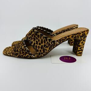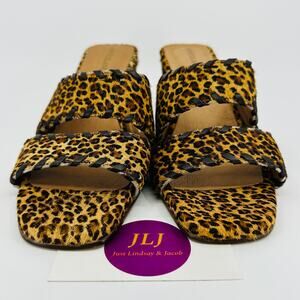 Overland Women's Gina Leopard Print Cowhide Leather Heeled Sandals Size 40 EU/ 9.5-10 US