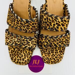 Overland Women's Gina Leopard Print Cowhide Leather Sandals Size 40 EU/9.5-10 US