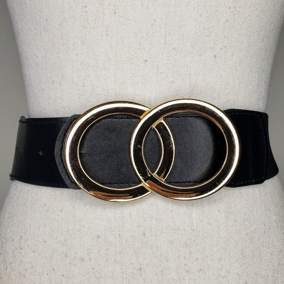 Overlapping Gold Tone Buckle Wide Elastic Belt