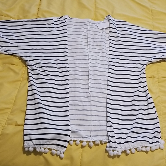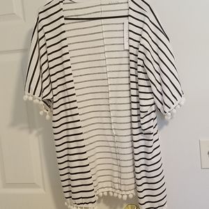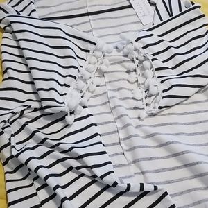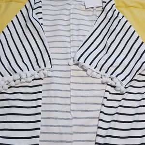 Black and white stripes Pom-pom detail on sleeves and bottom