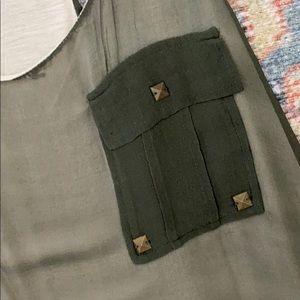 Love this tank! Silk and Rayon combination tank with stud embellishments, this looks so cute with a pair of boyfriend jeans or skinnies. Love the army green and cream combination. Great condition, bundle to save.