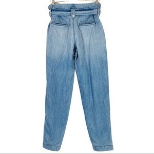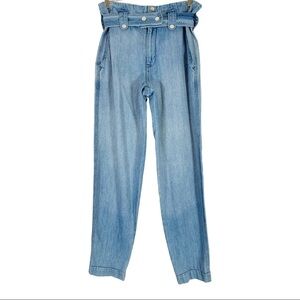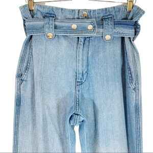 Like new Overlover Jesse Paper Bag Jean Blue Size 25. Cotton blend. Front zip with snap button closures. Detachable waist belt with snap button closure. Front and back pockets.
