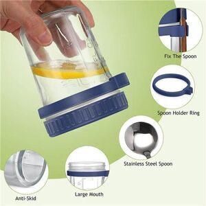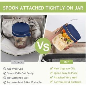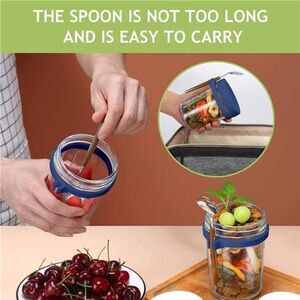 The overnight oatmeal cup comes with a silicone hanging scoop ring and stainless steel spoon, it can be carried around, it is very convenient, it