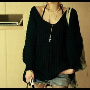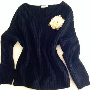 💥 Oversize Black V-Neck Sweater