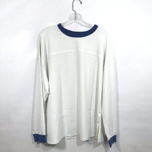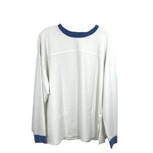 Oversize Lightweight Long Sleeve Crew Neck Blouse Top White Blue M