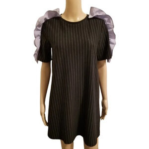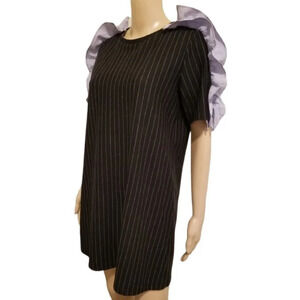 Oversize Pinstripe Lavender Ruffle-Shoulder Dress by ZARA