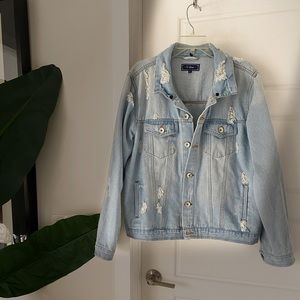 Oversize ripped/distressed Jean Jacket. Great to wear on top of dressed for a relaxed denim look.