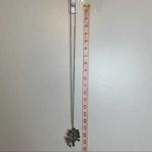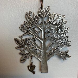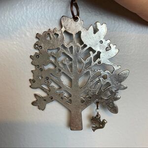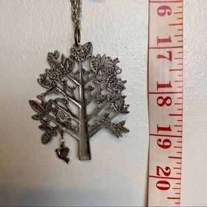 Costume jewelry with hanging bird Oversize Silver Tree of Life Necklace with words on leaves such as, trust, think etc great condition