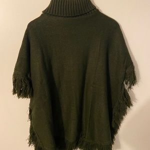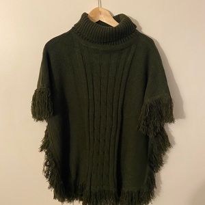 Brand new with tags Hunter green Oversized turtleneck poncho with arm holes. It’s warm and beautiful. Cable knit design on the front. Fringes added for a very unique look.