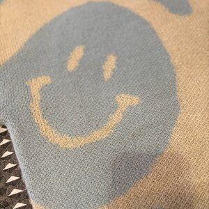 Cozy sweater with playful blue smiley face design on a cream background. Altered state oversized sweater women’s size small perfect condition no flaws.