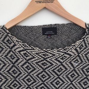 Tight sleeve oversize sweater, small stains on front blend into knot pattern