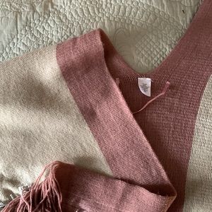 Cozy oversized wrap with fringe. Was a gift and worn once…just not my colors! Excellent condition.