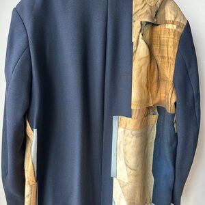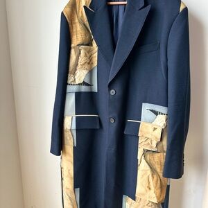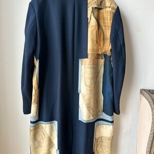 Oversized Acne Navy and Tan Patchwork Trench Wool Coat