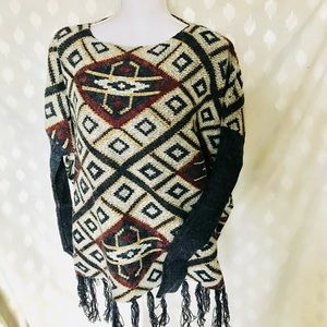 Oversized Aztec print sweater solid sleeve