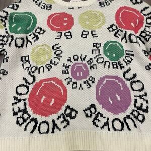 😊 Oversized “Be Kind” Smiley Face Sweater – Size Small (Fits Up to Medium/Large)