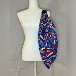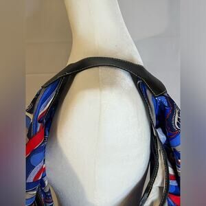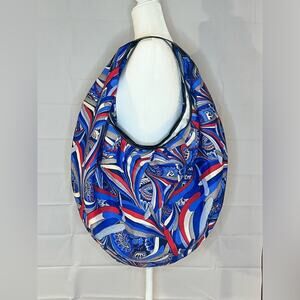 Oversized Beach Bag Red White Blue with Faux Leather Handle