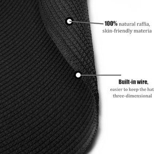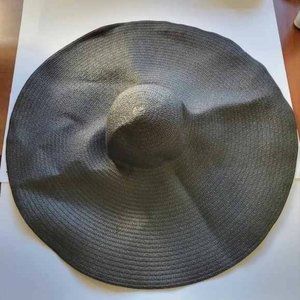 Oversized Black Beach Straw Large Wide Brim Visor Handmade Hat Size 5-7 1/4