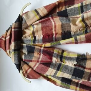 Oversized Blanket Scarf Wrap Square Plaid Boho Fringe 53x53 Warm Academia Winter