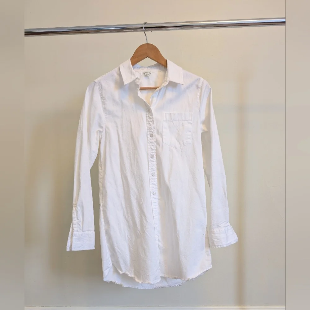 Classic white button up shirt in a long oversized fit. Can be worn as a shirt, shacket, or even dress or coverup. Sturdy fabric. NWOT.