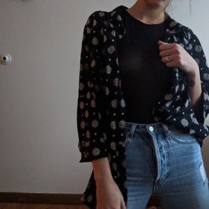 Oversized button up shirt. Super cute Japanese inspired pattern. Perfect to wear as a tunic buttoned up or a kimono unbuttoned. Great for that casual but put together look 😘
