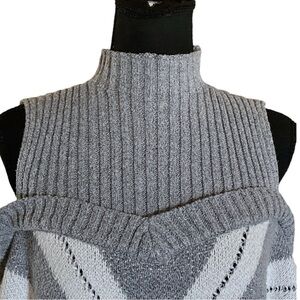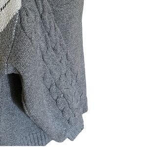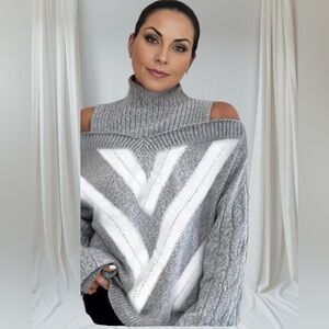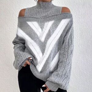 Oversized Cable Knit Sweater Sexy Boho Chic Grey/ White Off Shoulder Size 4X