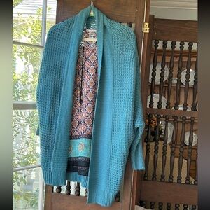 Abercrombie & Fitch Oversized open front teal cardigan. All season waffle knit breathable design. Open front cardigan.