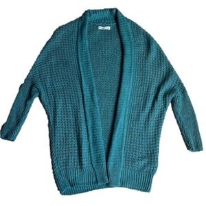 Oversized Cardigan Waffle Knit Teal Open Front Abercrombie & Fitch Cardigan