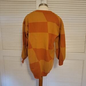 Oversized Checkered Knit Sweater Orange Yellow Lalavon Size Large