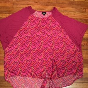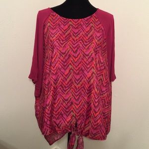 Oversized, Chevron top with dolman sleeves. XL. Bust measures approximately 30 inches. Shoulder to him in the front measures 27 inches. It is a high -low T-shirt so the back from shoulder to hem is 29 inches. Super cute top with jeans and boots.