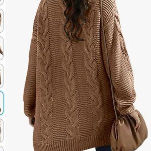 Womens cardigan sweaters feature in open front, cable knit, long sleeve, oversized loose fit style, solid color, chunky knit sweater cardigans