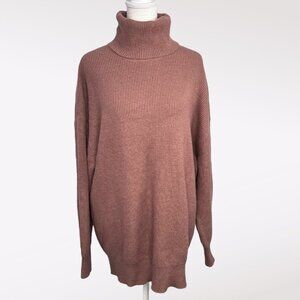 Oversized Coffee Brown Rib Knit Turtleneck Sweater Size Medium Large