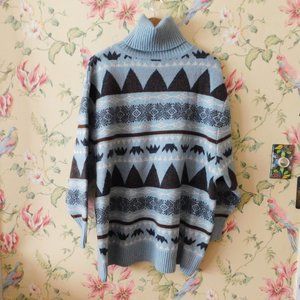 🌲🦌 Oversized Cozy Mountain Turtleneck Blue Sweater