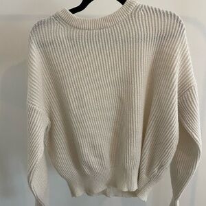 Stay warm and stylish with this cozy cream ribbed sweater. Perfect for any occasion, this sweater offers both comfort and elegance.